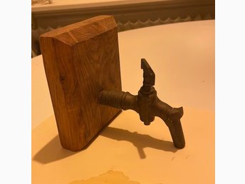 Antik mässingskran med träsockel-#1
