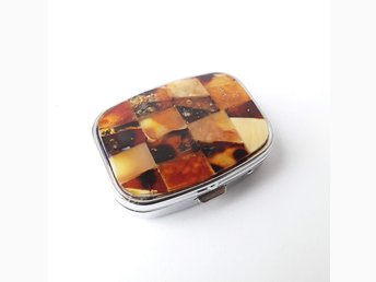 Pillsburk med baltisk bärnstensmosaik 2-fack rostfritt stål medicinbox