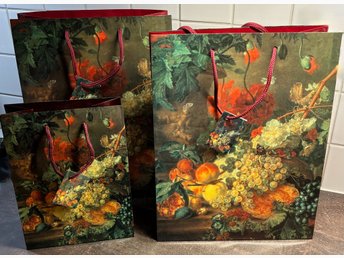 3 underbart vackra bärkassar/present påsar i papper med frukter.