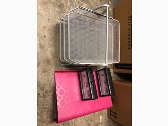 Pappersmagasin, skrivbordsunderlägg & två skrivbordsur