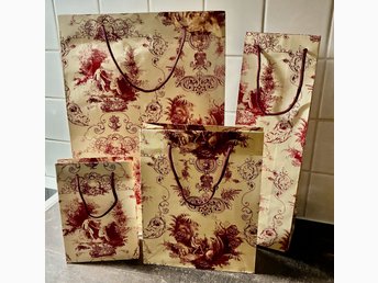 4 rosa bärkassar/present påsar i papper med romantiska motiv