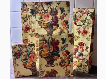 4 underbart söta bärkassar/present påsar i papper med änglar/blommor/bokmärken.