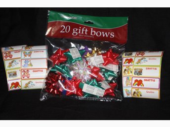Present(snöre), -rosetter samt Grattis- eller God Jul-etiketter, 20 st Helt nya