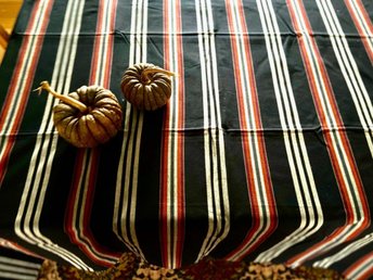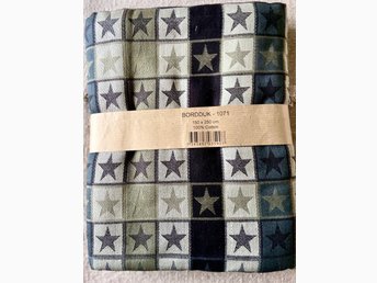 Bordduk Jacquard i svart & linnefärg med vävda stjärnor