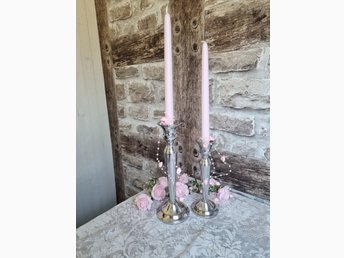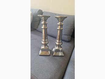 Ett set ljusstakar i silvrig metall, Silverljusstakar. Tidigare 259 kr Nu 199 kr
