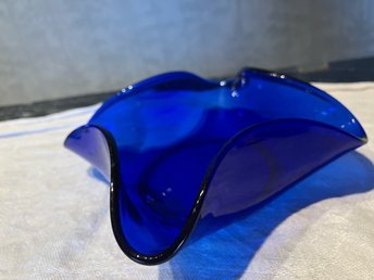 Blå glas vågig skål