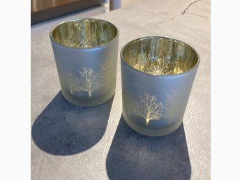 Två ljuslyktor med träd motiv