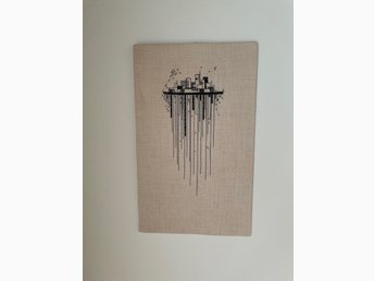 Textiltavla, grafiskt broderad stad