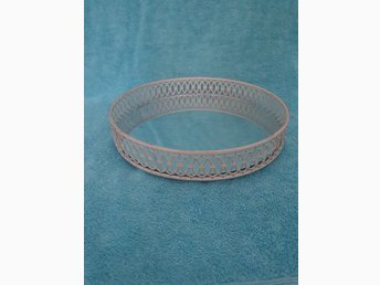 Beige rund spegelbricka i metall