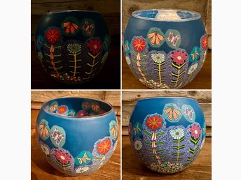 Ljuslykta med blommor och fjärilar