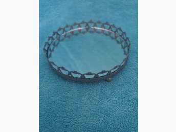 Silver/rostfärgad rund spegelbricka i metall