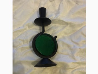 Ljusstake i svart metall med grön detalj
