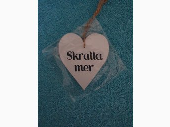 Hjärtformad dekoration med texten "skratta Mer"