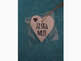 Hjärtformad dekoration med texten "Älska Mer"