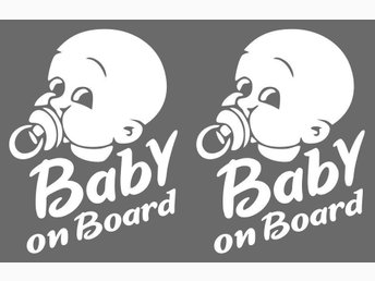 [ DEKALER] Baby On Board. Två st. 10 x 7.5 cm. Vit