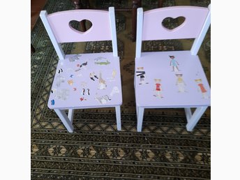 Rosa Barnstolar i trä med hjärtan