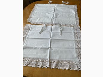 Två vita örngott med spetskant 52x37 cm barnörngott