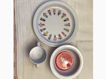 Barnservis med mugg, haklapp och bestick
