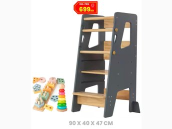NY Montessori lärande trätorn med och pussel • 90 x 47 x 40 cm • Mörkblå • SV