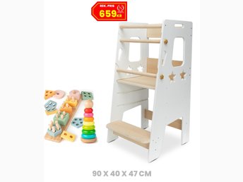 NY Montessori lärande trätorn med och pussel • 90 x 47 x 40 cm • Vit • SV-C