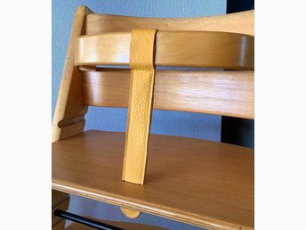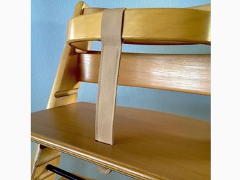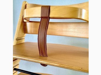 NY LÄDERREM Äkta skinn (Ljusbrun) BYGEL-REM till STOKKE Tripp Trapp barnstol.