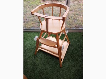 Barnstol / matstol i trä, fällbar till bord med stol