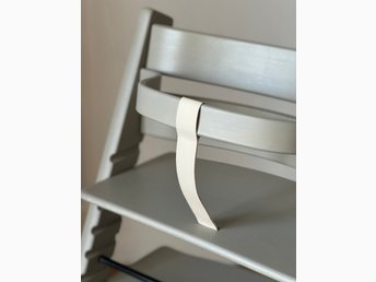 NY BYGELREM (vit) ÄKTA LÄDER-REM till STOKKE Tripp Trapp barnstol.
