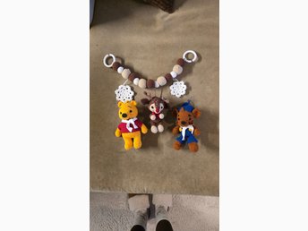 Virkad barnvagnsmobil med Nalle Puh, Rudolf och Bamse