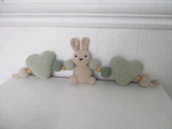 Virkad barnvagns mobil / barnvagnsmobil / hänge till barnvagn / kanin / hjärtan