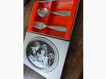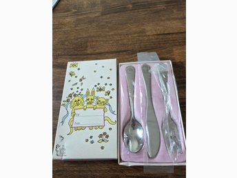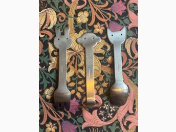 Bestick med gulliga djur Gense retro barnbestick katt apa kanin djurmotiv