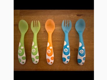 7 st Ergonomiska Bestick för barn i glada färger se bilder.