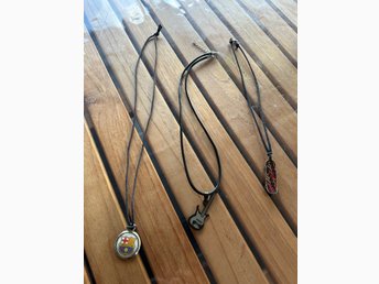 Halsband med hänge och läderrem