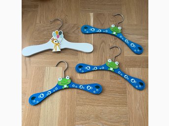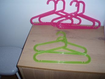 Klädhängare - galgar till barnkläder 4 röda och 2 gröna i plast.
