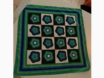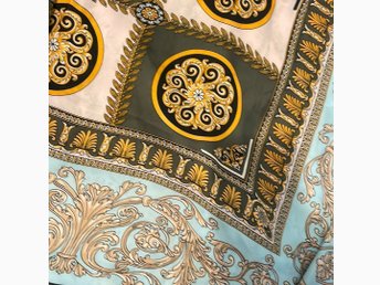 Vintage - Grön, blå, vit, scarf 68 cm x 68 cm cirka