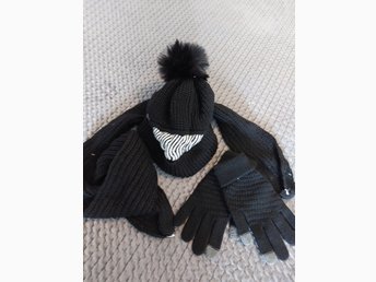Svart mössa, halsduk och handskar set