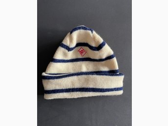 Vit och marinblå mössa ull ullmössa klassisk randig naturvit och blå