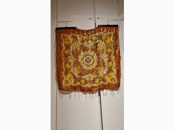 Guldig sjal i gul och roströd färg, ca 101 x 101 cm