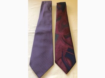 2 Lätt-Retro Slipsar - Lila Polyester Handwash + Vinröd Mönstrad LL Made Sweden