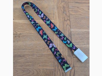 Marinblått bälte i resår mönstrat med fjärilar, 69 cm