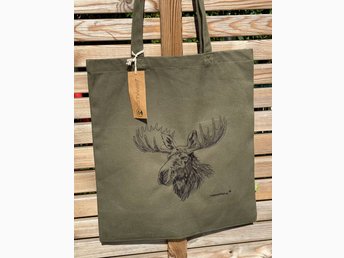 Nyhet! Kraftig tygkasse med en maskinbroderad Älg 100% ekologisk bomull!