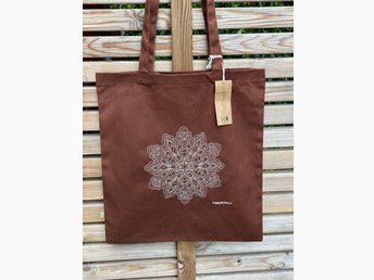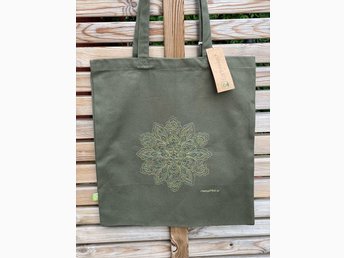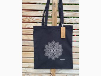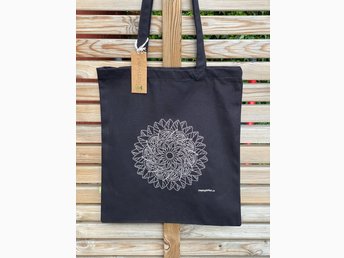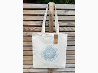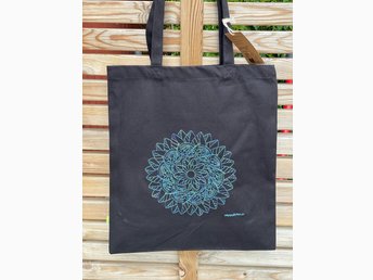 Nyhet! Kraftig tygkasse med en maskinbroderad Mandala 100% ekologisk bomull!