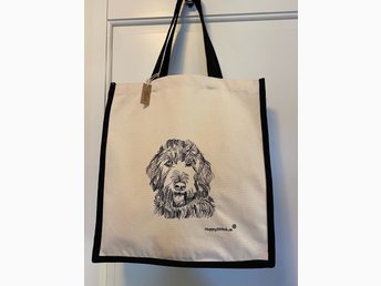 Underbar väska i bomullscanvas med Labradoodle