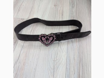 Brunt bälte med hjärtformat spänne, ca 80 cm