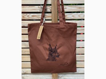 Nyhet! Kraftig tygkasse med maskinbroderad Dobermann 100% ekologisk bomull