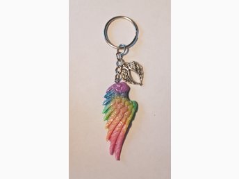 Nyckelring änglavinge, neon, vinge av epoxy med berlock ängel