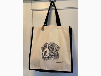 Underbar väska i bomullscanvas med Berner Sennenhund.