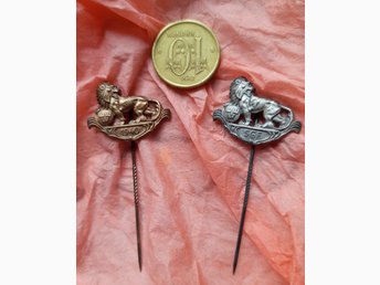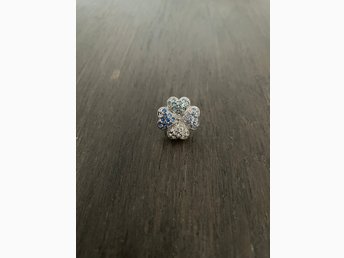 Oanvänt broschstift-pins i vitmetall med blåa och vita strass stenar