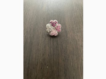 Broschstift-pins i vitmetall med rosa, röda och vita strass stenar