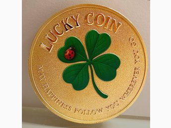 Lucky Coin med Fyrklöver, Lyckomynt med Nyckelpiga – Perfekt Present