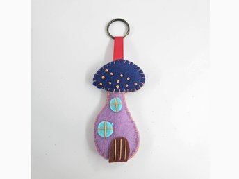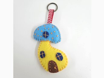 Nyckelring Magic Mushroom House i filt – Handgjort väskhänge